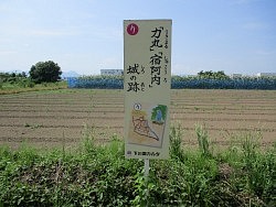 宿阿内城は文明年間(1469〜1487)に三輪氏により築かれたと載る。本丸跡と言われる畑に、「力丸、宿阿内 城の跡」と案内がある。下川淵カルタと書かれいるが、上毛カルタは知っていたが初見であった。案内の南に藤大明神が祀られている。境内東に接する民家裏(北)に土塁を思わせる高まりがあるのみだった。