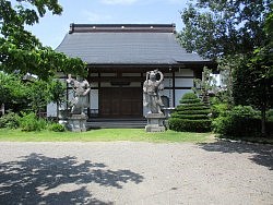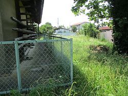 郷蔵は明治42年まで本来の目的で使用されていたと載る。因みに蔵は群馬県指定史跡になっている。周りは金網で囲まれている。北側に堀があっただろう下は民家が建っている。縄張図に従い西林寺(二の郭)へ向かうと、南側は桃ノ木川に続く低地で、城址は台地の縁を利用しているのが分かる。