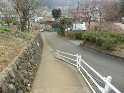 さらに下れば墓地・畑地の間を通り、国道412号に出る。左に行けばプレジャーフォレスト入口前のバス亭に着く。この辺りは鼠坂(ねんざか)と呼称され、江戸時代までは要衝の地で近くに鼠坂関趾(遺跡はなく石碑のみ)がある。