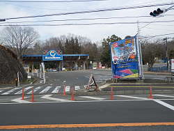相模湖駅から相模湖大橋に向かう。駅前の巨大な案内に、1.6qと記されている。橋の左奥に相模ダムが見える。橋を越えたら左折ししばらく行けば、車道が曲がった左先に東屋と石製の大きなオブジェが見える。