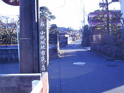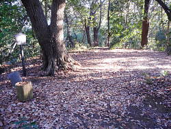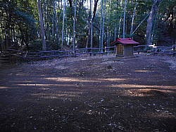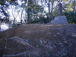 小高い上に「冨士仙元大菩薩」と刻まれた碑が建っている。富士仙元とあるので富士山の遥拝所のようだが、富士山が望めるか確認はしなかった。地図には白山社と載っているが、寺社に知識が無いため分からない。こちらは主郭から離れた出丸(外郭)跡と載っている。南に尾根が続いているが、数十メートル先は住宅地になっている。