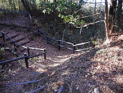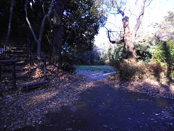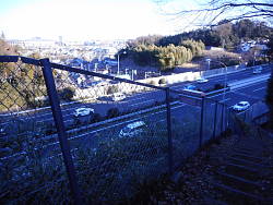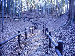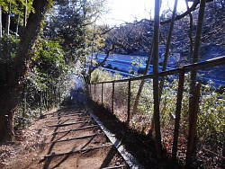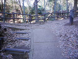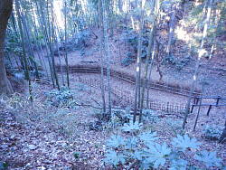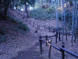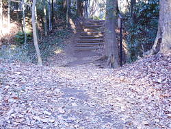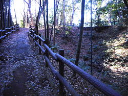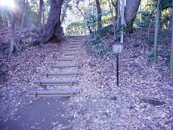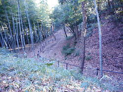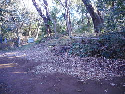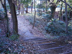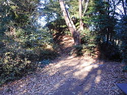 第三京浜側に行くと直ぐに堀跡かと思える場所を通る。フェンス沿いに階段を下り、高架下を潜り再度階段を上る。本丸とは尾根続きであったらしいが面影はない。