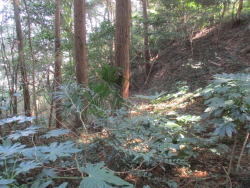 本丸東下には帯郭が存在する。帯郭南に本丸への虎口跡らしき場所があり、南に竪堀があり見られる。竪堀には滑り止めが見え、こちらも南下から来られるようだ。