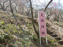 すぐに天神梅林に着く。やや小高くなった場所に梅が植えられている。こちらも蕾が多く、紅梅は目立つが白梅が周囲の色に溶け込んでしまう。奥に天神が祀られている小ぶりな社が建っている。高尾天満宮とある。天神梅林から旧甲州街道を挟んだ所に荒井梅林が載っている。