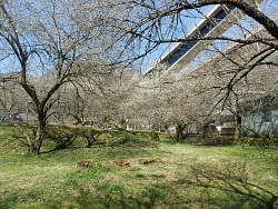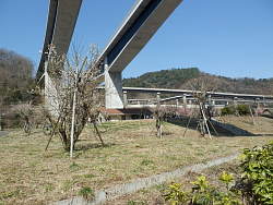 高速の橋脚の間に梅林 |