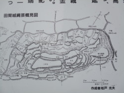 案内板の概略は「土塁と空堀で区画された主郭と、細長い第二郭が並ぶ城跡で、現在城山団地になる山小屋と呼ばれる腰郭があった。西のガンガン坂は切り通しで、城域を区切る空堀だった可能性がある。長軸500m・短軸240mの城域となる。土気酒井氏が土気からいったん田間城に移り、その後東金城に移ったとされるが裏付けがない。東金酒井氏の領域東の境目の城として機能し、天正18年(1590)に東金城の落城にともない廃城になる。」