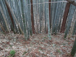 社殿左からは東金の市街地が見渡せる。道は整備され歩きやすい。両斜面は竹林で密集していて見通しが悪い。一部虎口を思わせるような造りがある。