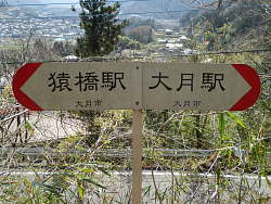 下では芽吹き始めた木々が多い。正面に車道が見えだし降り立つ。空堀からのルートが何処で合流したのか分からず仕舞いだったが、地図では東登山口からまもなく合流するようだ。大月駅に向かえば、車道は下り気味に10分で南の登山口に着く。駅までは往路と同じ道を歩く。