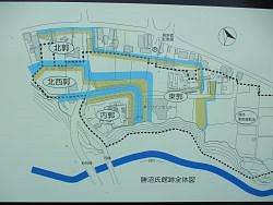 広範囲が国指定遺跡となっている。指定範囲の四分の一を見学したに過ぎない。主郭部分と東郭のみの見学だが、それなりに整備されたものだった。西入口のトイレ横の部屋にパンフレットが置いてある。 パンフレットに拠れば、15〜16世紀に営まれた有力武将の居館跡で、武田信虎の弟・信友が勝沼衆を率いてこの地を拠点としていた。縄張は3期に分けられ、第2期が発展期で、3期では主郭の外堀・外土塁を埋め立て、屋敷を建てるなど防衛機能を失うような改変がなされる。整備の目標は第2期を目標にしている、と載る。