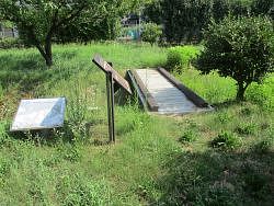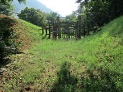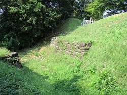 西端に西入口があり、トイレ・案内の置いてある部屋が隣接する。主郭の北西隅から郭内へ入るのだが、縄張図に堀状の凹みがあり、橋が架かっている。門でもあったのだろうか、石積みも確認出来る。