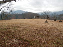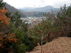 斜面を回り込むように登れば見晴の良い尾根に出る。川棚見張台と石標がある。先端からは谷村町駅が眺められる。登るに連れて整備の為か木々が極端に少なくなり、段差のある山城の雰囲気を楽しめる。特に三の丸下からが良い。