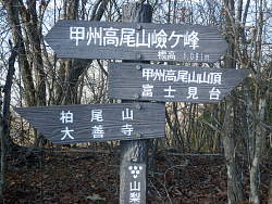 1110mの等高線がある。甲州高尾山は東京キの高尾山と区別するための山名か。甲州高尾山から南に下った中腹に飯綱権現(神社)が祀られているので、そこからの命名だろうか。東京の高尾山・神奈川の高尾山も飯綱神社がある。