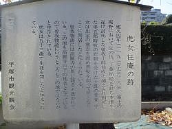案内板の立つ土塁跡しか分からない。西に50mの道路脇に水路を伴った藪(竹)があり、諸先人さんによれば土塁跡と載る。北に50mに東光寺・八幡神社があり、東光寺横に虎女住庵の跡と石柱が建っている。蘇我兄弟亡き後、出家し尼となりこの地に閑居したと伝わる。曽我物語には高麗寺の奥に籠もると書かれており、この地も高麗寺山下となっている。物語で言う地はここではないかと推定される、と載る。 立ち寄りを終えて湘南平へ向かう。
