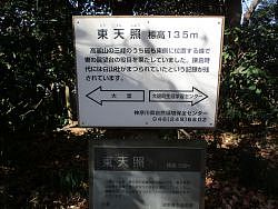 二郭東寄りに明確ではないが東側に堀切と言われる場所がある。少し下に東天照(とうてんしょう)の案内板があり、東の展望台の役目を果たしていた。鎌倉時代は白山社があったとも。先は急坂で下って高来神社・生涯学習センターへ行けるが、山頂下まで戻り女坂経由で神社に下りる。