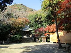 神社背後で男坂と出会い、境内に出ればモミジが陽にに照らされ見頃であった。いろいろなHPに伊勢宗瑞(北条早雲)が、扇ヶ谷上杉氏と対立した際に取り立てたとある。その前にも戦のたびに陣を敷いたとも載っている。陣をおくには格好の要害のようだ。