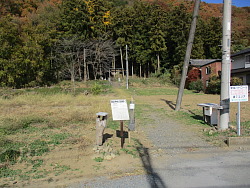 善導寺さんに許可を戴いて駐車させて貰う。諏訪神社・花園城跡の入口に標示とA3版の二つ折りパンフレットが置かれている。畑を山に向かって行けば、石段の上に諏訪神社が祀られている。