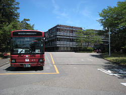 グランドを突っ切り一般道に出て、反対側の小高い丘にも散策コースを歩いて、栗崎地域の宥勝寺付近に出られる。しかし気温が30度近くと暑く、駅に戻ることにした。建物名で本庄倉庫・本庄共通教室の横を通り、本庄ドミトリーの建物前に出る。倉庫・ドミトリー前には早稲田スクールバスが何台も駐まっている。ドミトリーを右手に見て下って行けば駅前に下りてくる。ゆっくり休憩しながらでも、1時間程度で戻ってこられる。
