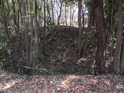 東二の郭土塁の先、左奥は本郭 |