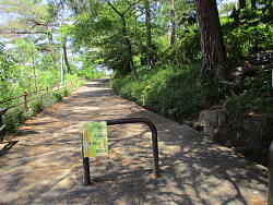 軽自動車なら通れる(車両禁止)舗装道から入る。ここには幾つか両崖山の標示がある。やや上の噴水広場を過ぎ、まだ道は舗装されている。右手には足利市街地が眺められる。