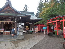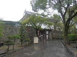 下る途中には「神社近道」と大きく案内が出ており、お参りをするため道をずれる。針綱神社が建っている場所は、桐ノ丸と言われる曲輪らしい。南の階段を下れば稲荷神社、西には猿田彦神社が建っているのが松ノ丸。正門にあたる鳥居が後になってしまう。雨が強く東の外堀にあった内田門跡は諦め駅まで 1.5qを戻る。