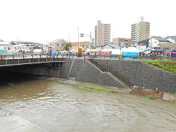 天守の観光客は、平日で雨のためか少なく、城下町の方が圧倒的に多い。最上階の回廊は木曽川しか出られず、周回は出来ない。