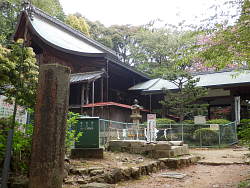 鳥居から少しで十七烈士墓が左奥にある。大きく左に回り込むと三社宮、右奥に本殿が建っている。本殿右脇から裏手に回り登って行く。