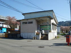 禾生駅までに富士山が見え、珍しく青空に映えている。駅ホームをつなぐ架橋から、終わりかけた桜の先に富士山が眺められる。駅を出て左の富士みち(国道139号)を大月方面に向かう。中年のご夫婦らしき人が先行して行く。右手にレンガ造りの落合水路橋が見え出す。朝日川に架かる落合橋を渡った先を川に沿って右に入る。[登山道]と書かれた標識が付けられている。