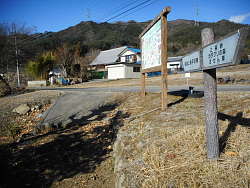 竹森川を越え、民家脇を過ぎれば林道に出る。左折すれば林道の上条平沢線の入口に出て、一般道を左に行けば玉宮バス停(終点・始発)に着く。塩山駅行きは1日3本で12時35分を逃すと18時45分までない。タクシー運転手さんの話では、以前は玉宮ではなく平沢と呼んでいたとのことだが、真偽のほどは分からない。
